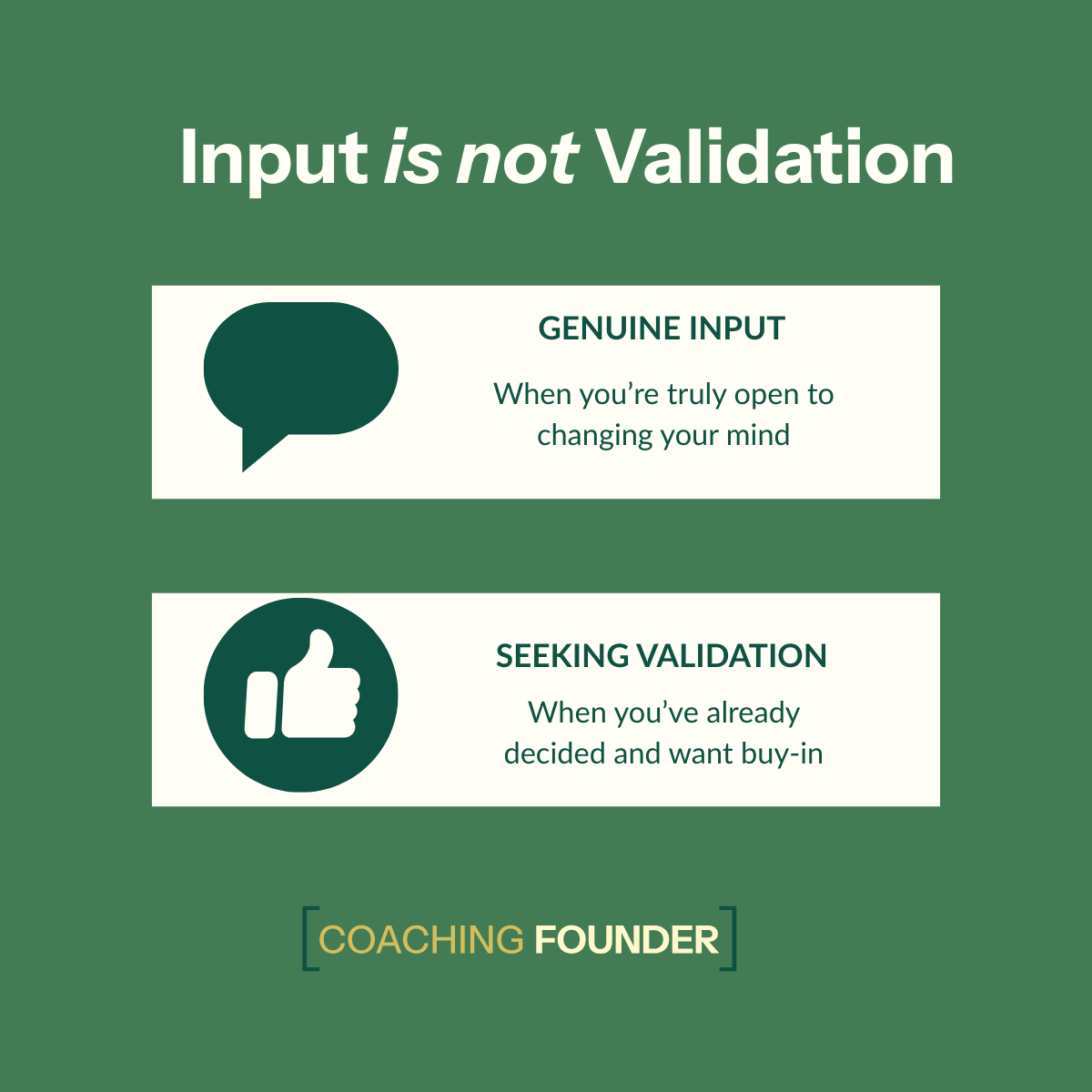 The next time you catch yourself about to ask for input, pause. Ask yourself: "Am I actually open to changing my mind, or am I looking for validation?" Then proceed accordingly.
